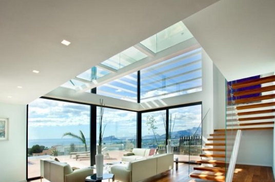 Modern 4-bed, 5-bath luxury villa in Costa Blanca with sea views, infinity pool, smart features, garden, garage, and all-inclusive rental pricing.